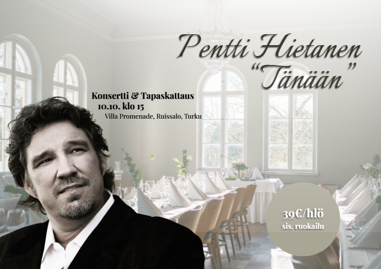 Turun Villa Promenadessa järjestetään 10.10.2026. konsertti “TÄNÄÄN - PENTTI HIETANEN”