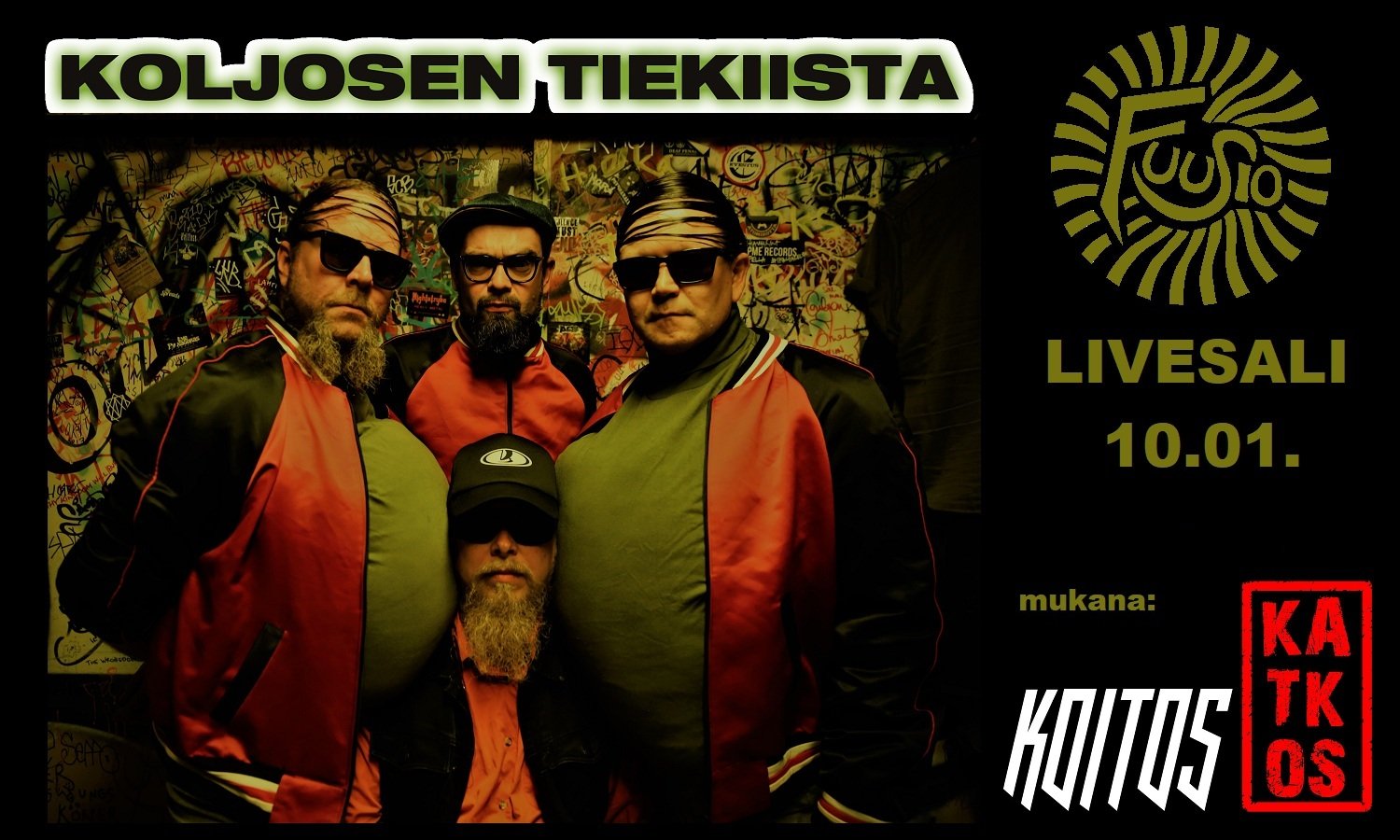 Kyllähän se näin on että se kovin bändi perustetaan tuhannen päissään naaman levätessä ravintolapöytään. Koljosen Tiekiista tosin ideoitiin kuivissa olosuhteissa Viikate-yhtyeen kesäisellä keikkamatkalla vuonna 2008. Jäljellä olevien kilometrien nielemisen tahdittajana toimi 80-luvun loppupuolen TV-sarja Fakta Homma ja musiikillisena innoittajana 80-luvun alun Suomi-HC-punk.
