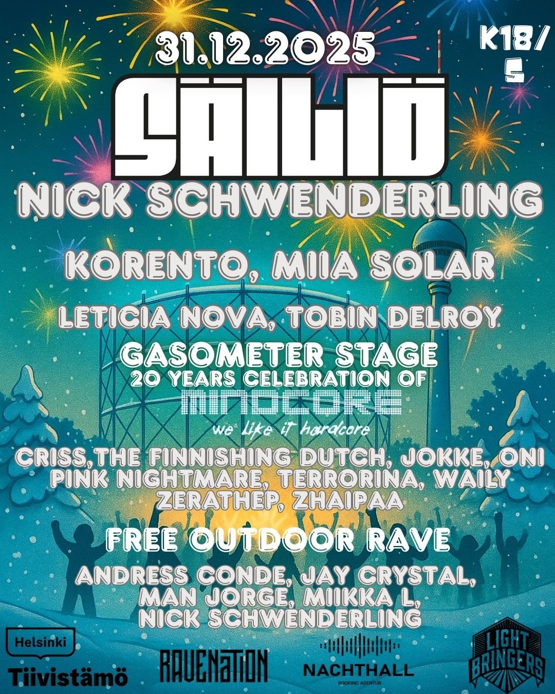 Astu uuteen vuoteen SÄILIÖ-tyyliin – siellä missä PLUR+R (Peace, Love, Unity, Respect & Responsibility) määrittää tunnelman. Kaksi sisälavaa Tiivistämössä täysi-ikäisille (lipulla) ja ilmainen ulkolava kaikille. Musiikki, valo ja yhdessäolo johdattavat meidät talviyön halki kohti uuden vuoden kirkasta alkua.