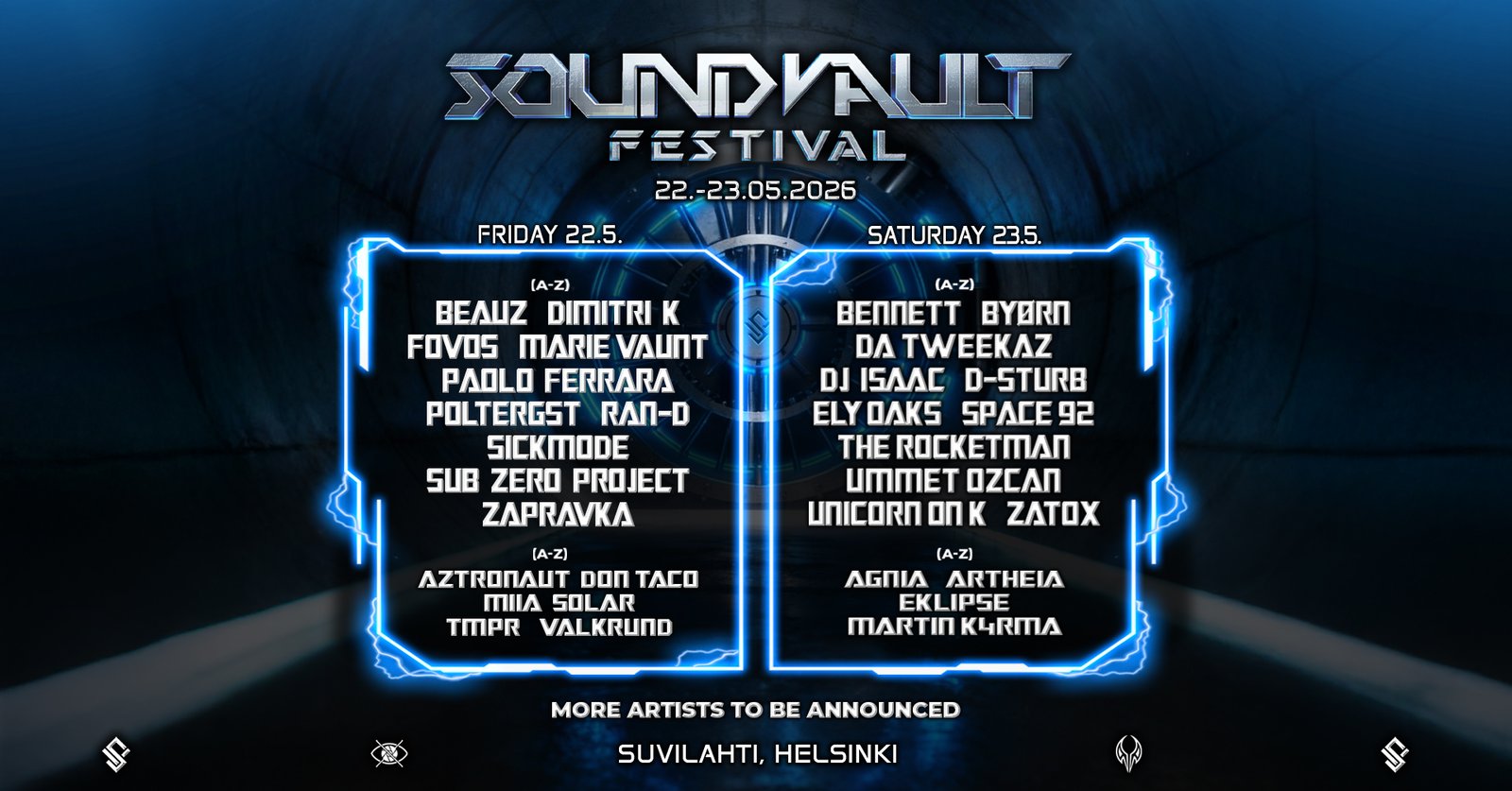 22.–23. toukokuuta Suvilahti täyttyy räjähtävästä energiasta, kun SoundVault Festival valtaa alueen. Kyseessä on Suomen rankin elektronisen musiikin festari!